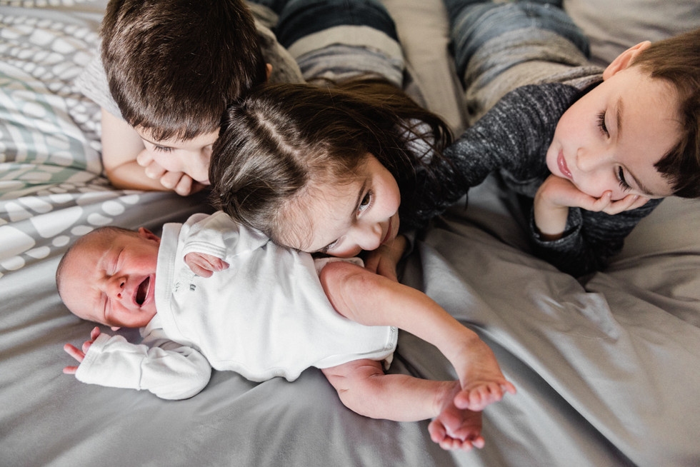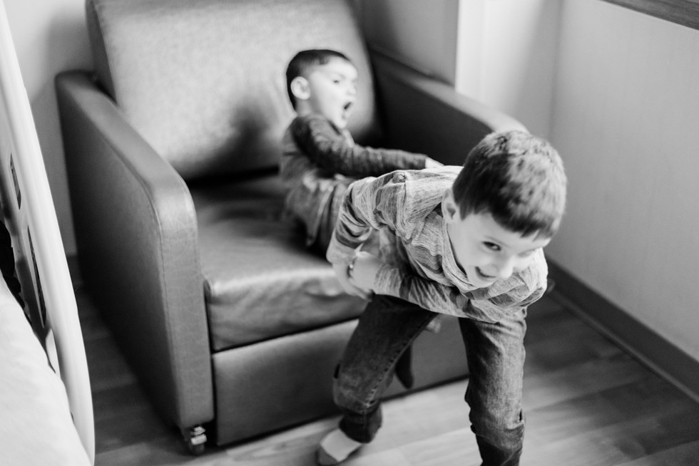 Clients like this are why I love my job! I'm happiest when people allow me to be a fly on the wall and capture some messy, crazy, wonderful real life. I had the best time meeting baby Max in the hospital, watching his older brothers jump on a hospital chair to get their wiggles out, and seeing his older sister hold him ever so sweetly. I loved coming into their home and watching in amazement as Natalie and her husband Jared got four kids and themselves ready. I love this family.